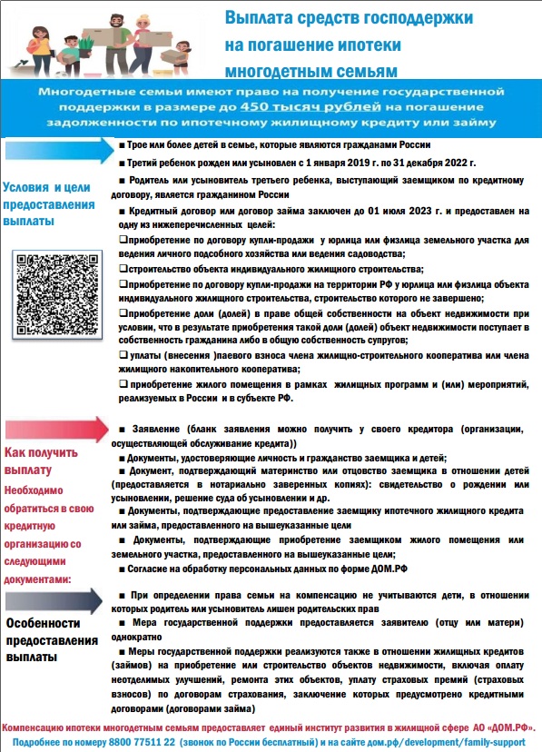 Выплата средств господдержки на погашение ипотеки многодетным семьям