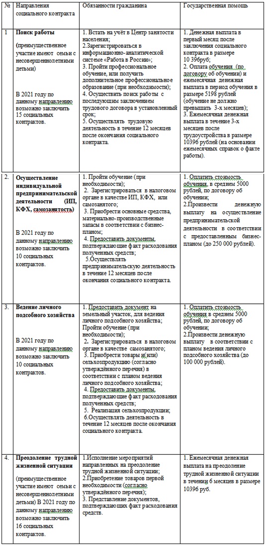 О возможности получения государственной социальной помощи на основании социального контракта.